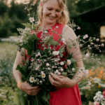 Die Zutaten ernte ich frisch auf den Feldern oder den Hecken an den Feldreinen. Frische Blüten, Beeren, Kräuterblätter und Äste fringere ich Zentimeter für Zentimeter in Form, der Kontur des Kreises folgend. Das spannende am Loop, macht die Unterbrechung, das Nichts, aus. Die Blumen sind nur um ein Drittel des dekorativen Rings arrangiert, der Rest bleibt pures Material.